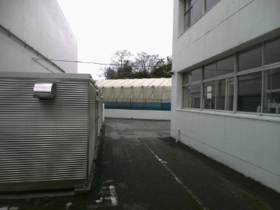 夏の体育の授業中に使ったり、部活動で使います。温室プールでしかも天井も開くため冬でも問題なく部活動ができます。