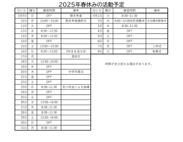バスケ部の春休み