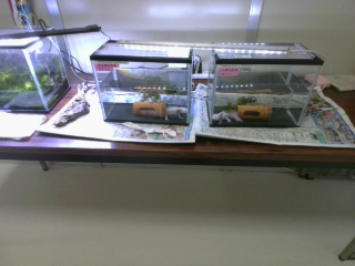 これはウーパールパーの水槽です。名前はオッチーとますちんです。みんなのアイドル!