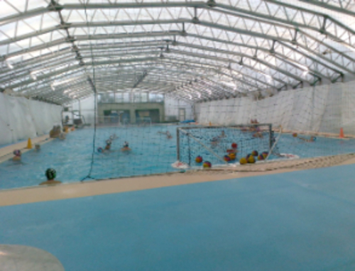芝浦柏のプールは25m6レーンの室内温水プールです。夏には、開閉式の屋根が開きます。また、芝浦柏の水泳部の活動場所にもなっています。冬は、プールの水温が冷めないように銀シートやブルーシートを敷きます。なので、冬でも学校で部活ができます。温水シャワーや男女別の更衣室トイレも付いています。