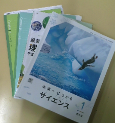理科Aでは理科便覧と教科書を使い、板書をノートに写したり理科便覧を見ながら授業を受けます。
